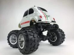 This is the CEN Racing Fiat Abarth 595 1/12 Scale 2WD Monster Truck. Officially licensed CEN Racing Q-series Fiat ABARTH 595 RTR. 1/12 scale Solid Axle 2WD (4WD optional upgrade) Monster Truck, with wheelie bar, Hobbywing 40A ESC, Savox servo, and big bore oil shocks.