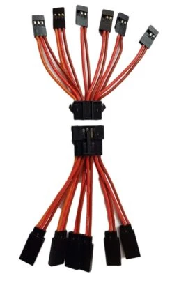 The AR one click comes standard with 6 Sets of independent 20AWG silicone wire and gold plated servo pins so you can connect completely different power systems together with one simple One Click + connector providing you with the best connection for your high powered models. And 20AWG silicon wire allowing for maximum current flow for high powered applications.