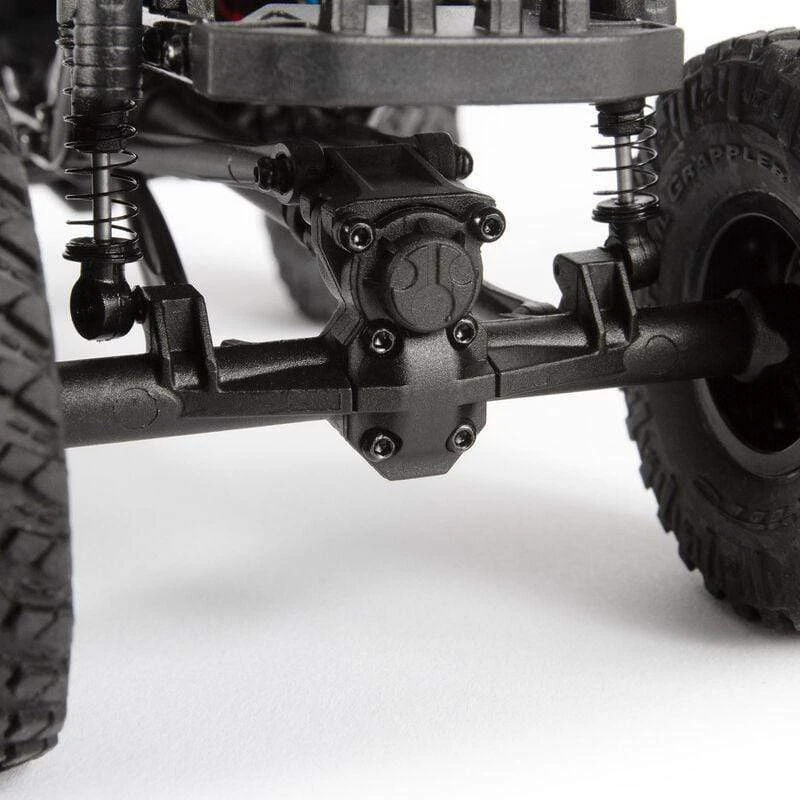 For the most reliable handling, the SCX24 chassis features a three-link front and four-link rear suspension. The combination of coil-over shocks and durable plastic suspension links delivers Axial-worthy crawling performance even at this small scale. The worm gear drive setup permits a high ground clearance plus a low gear ratio that reduces torque twist.
