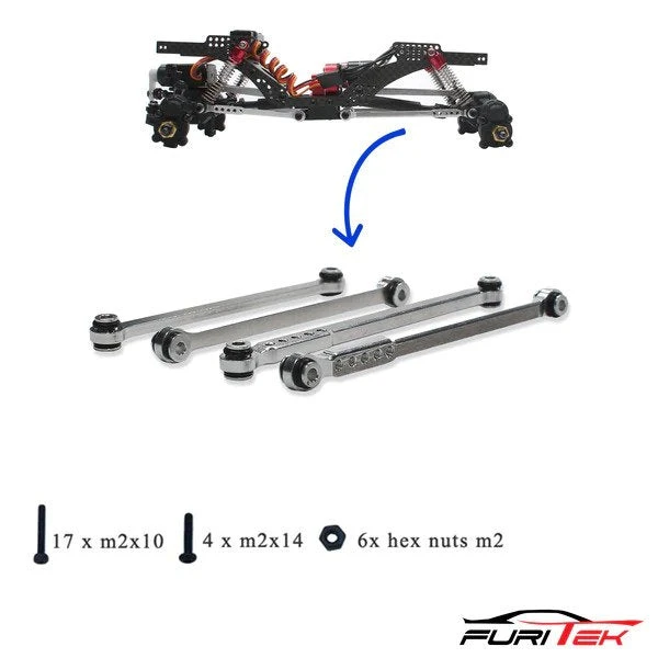 Finally good Links to extend the Fcx-24 or the Grasshopper Frame! The other Links on the Market until today are Bad because they have no Flex! The only Thing that would be better, in my Opinion, would be if the Links had a little Angle for Ground Clearance and im a Big Fan of Plastic Ends and dont like the O Ring System so much! A second Colour in Black would be nice too. But here works everything how it should and i love it because the waiting has finally an End! Thank You Furitek, until to the next Order!