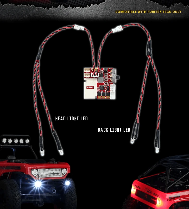 Furitek Ultima Led system provides ultimate experience for the 1/24 and 1/18 scale trucks. It is compatible only with Furitek Tegu main board. With plug and play, it is very easy to install and setup via Furitek smartphone app.