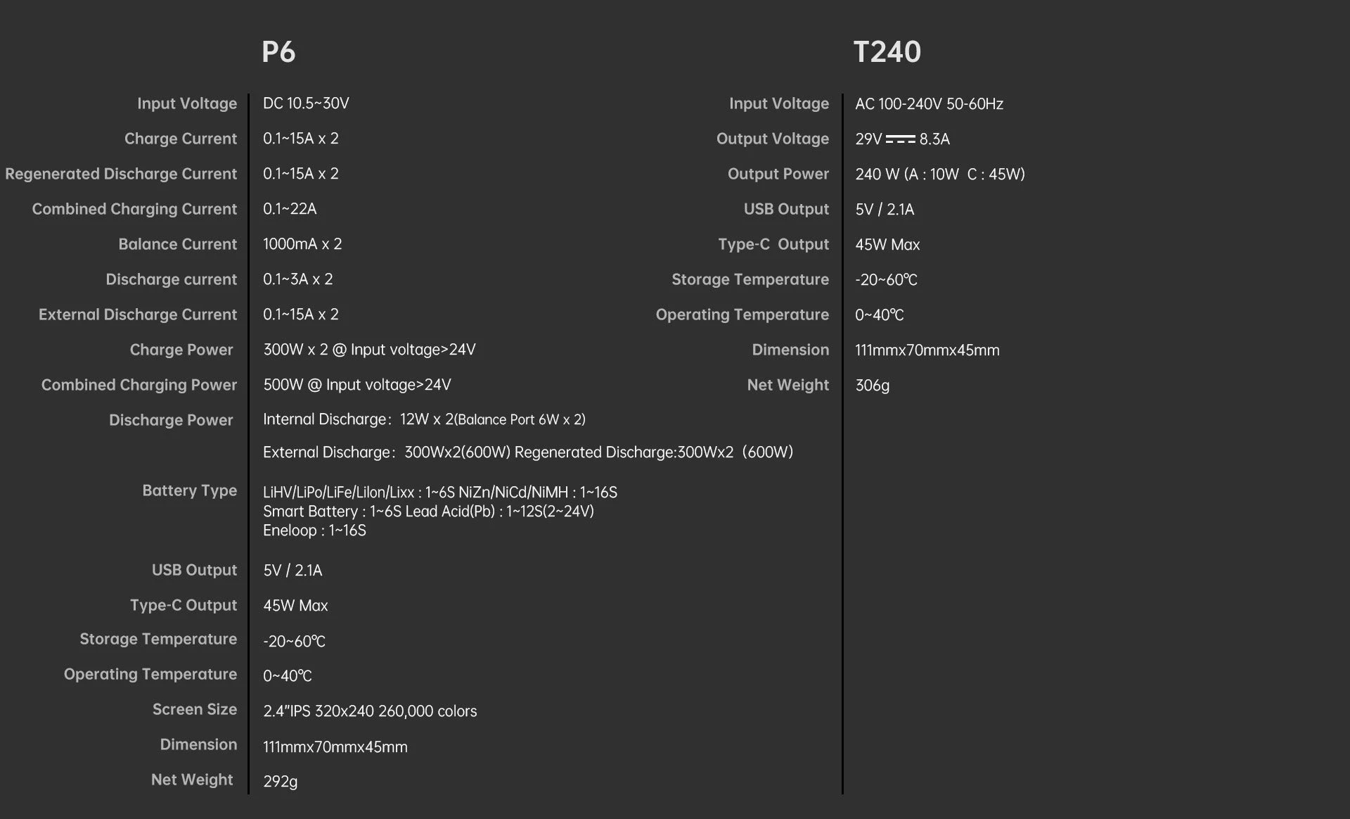 | Smart Battery: 1-6S Lead Acid (Pb) : 1~12S(2~24V) ; Eneloop : 1~16S |