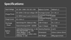 Balance Current: 1600mA × 2; Discharge Current : 0.1~3A × 2 ; USB-A output : 5V / 2.1A x2