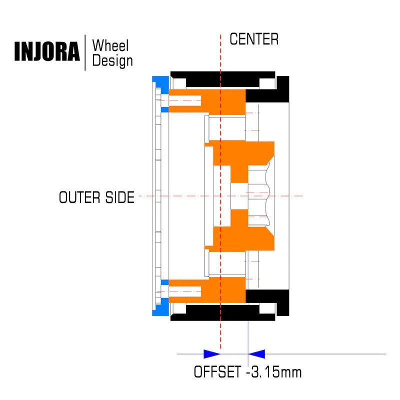 - INJORA amazing all brass 1.0″ beadlock -3.15mm offset wheel rims.