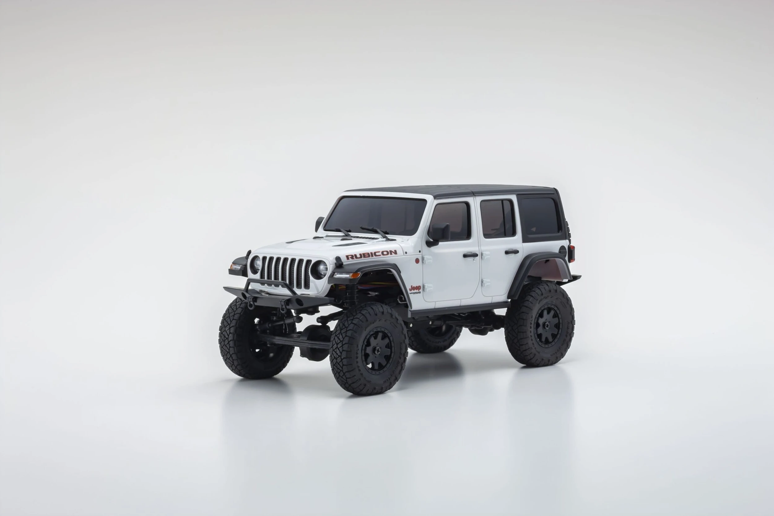 In the signature Jeepu00ae Wrangler lineup, the Rubicon boasts the strongest off-road performance. With black over-fenders, front grille with dark grey accent, and the distinctive Jeepu00ae round headlights, the formidable styling of the black hard top is immaculately reproduced in a model that rests on the palm of your hand.