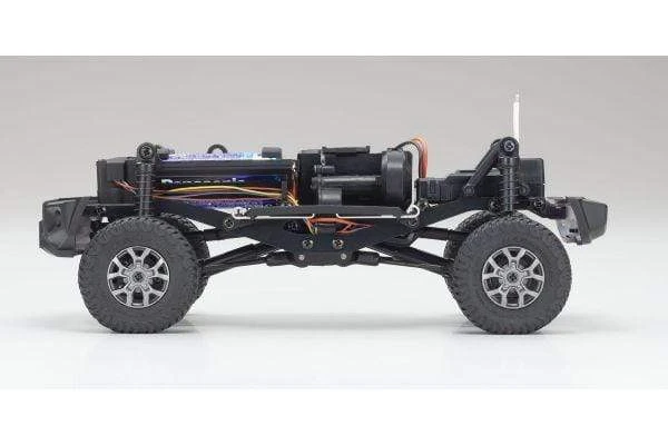 In 2019 the world’s most popular mini RC series, known as the Kyosho MINI-Z, celebrated more than 20 years of unmatched performance and scale realism in the hobby-grade RC category. The continuous pursuit of performance and evolution has led to the creation of a completely-new u2018MINI-Z 4x4u2019 design that delivers an all-new driving experience for RC fans of all stripes, with superior overall design, driving performance and high-quality injection-molded scale body construction. A significant feature of the MINI-Z 4×4 series is the greater emphasis of body detail and quality of finish that even surpasses existing benchmarks set by the MINI-Z. The body is also molded with thicker material to better resist crash damage from operation in rough terrain. Incorporating the same ladder- style frame of real 4WD vehicles, the MINI-Z 4×4 boasts a 3-link rigid axle suspension combining what would normally be two upper links into a single upper A-arm to deliver maximum suspension movement. A specially designed high-torque steering servo enables this machine to throw its elbows around in the hard terrain for excellent performance in the toughest rock-crawler conditions. The high-torque 130-size motor brings out the beast in the MINI-Z 4×4, specially geared to run well in the low to medium speed ranges common in crawling.