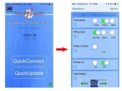 The BlueCom™ adapter provides a means of setting up PowerBox products wirelessly, and of updating the software to the latest version. To use the adapter all you have to do is simply and conveniently download the corresponding App for your Mobilphone or tablet from Google Play or the Apple Appstore – at no charge! Once you have installed the App on your mobile telephone or tablet, you can plug the BlueCom™ adapter into a PowerBox device. You are then in a position to load the latest update or alter settings. For example, the BlueCom™ adapter enables you to adjust all the various settings available on the iGyro3e* and iGyro1e*onveniently from your mobile phone.