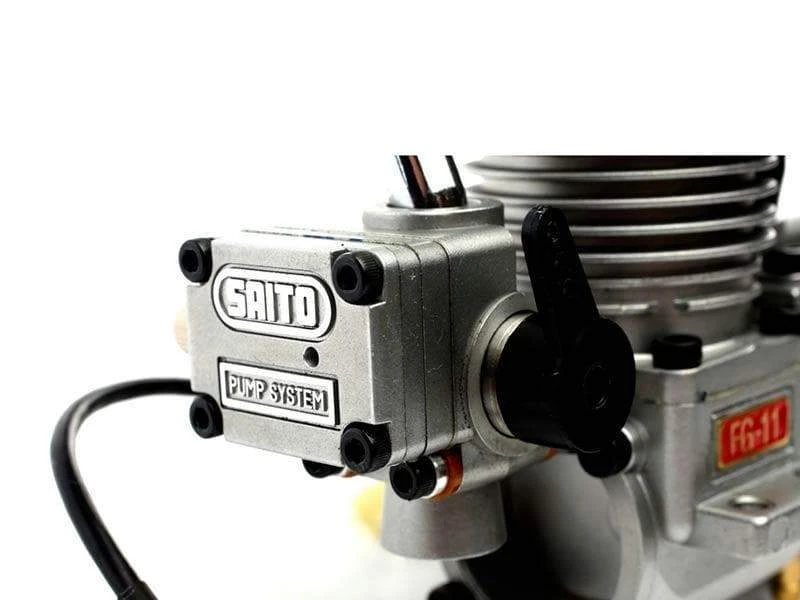 The RC industry’s most reliable manufacturer of top-quality glow 4-stroke engines introduces the Saito™ FG-11 gas engine. Finally there’s an answer for you 4-stroke fans who have been waiting to put gas power in a 40-size airplane. The Saito™ FG-11 engine is the gas burning equivalent to the proven .62 AAC glow engine in terms of size and dimensions, yet it gives you the starting ease and reliability of an electronic ignition and pumped carburetor. Best of all, it comes from the RC industry’s most reliable manufacturer of top-quality 4-stroke engines. So if you can’t wait to start running a cleaner and more efficient engine mount up an FG-11 and start enjoying the 90% savings per flight and Saito power and precision craftsmanship, the distinguished look and sweet sound stands as a reminder to everyone at the flying site of your discerning prowess for performance.