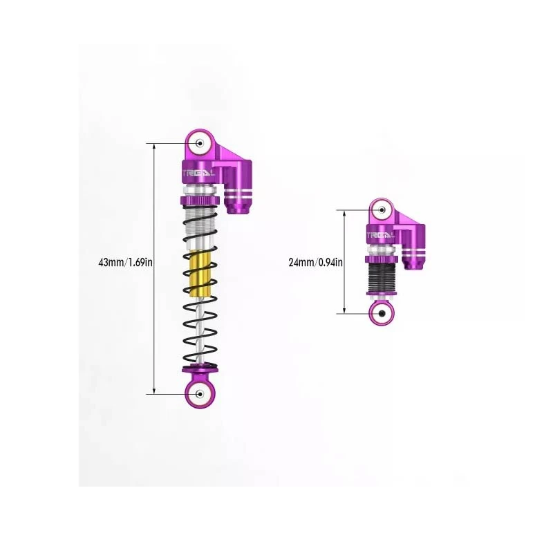 Treal 43mm Tele Shock Vibration Damper For 1/24 Axial SCX24 Bronco Gladiator C10 Deadbolt (Purple)