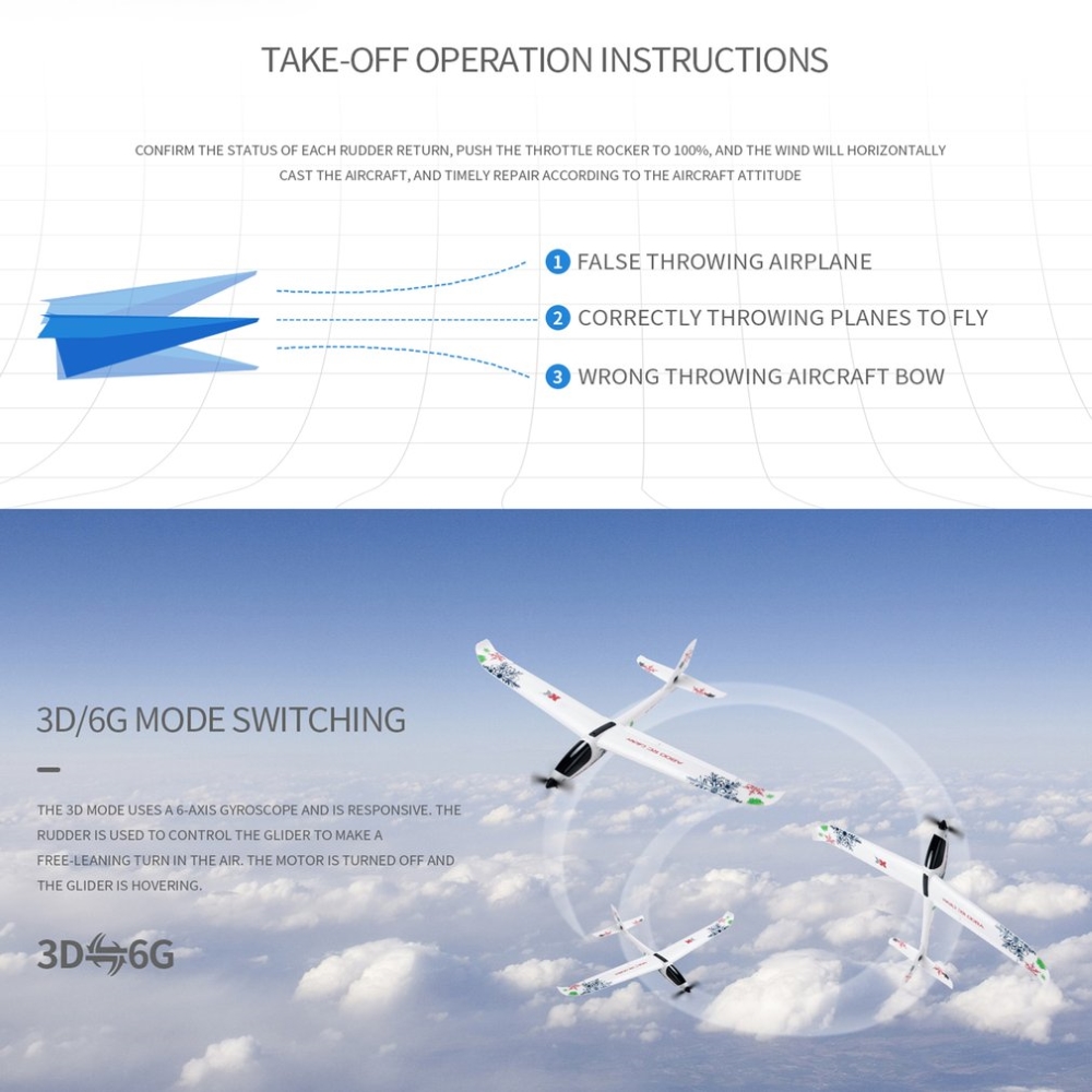 * 3D lock mode is improve posture and increase stability.Even primary level can fly it as an expert.6G mode kepp stabilization, which keep the airplane stable flying pose when you looese the transmitter in any case.